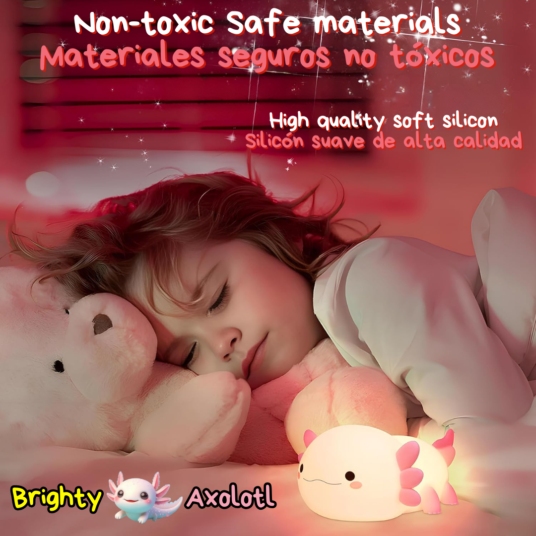 Brighty Axolotl features 2 different warm light intensities. NON-TOXIC SAFE MATERIAL